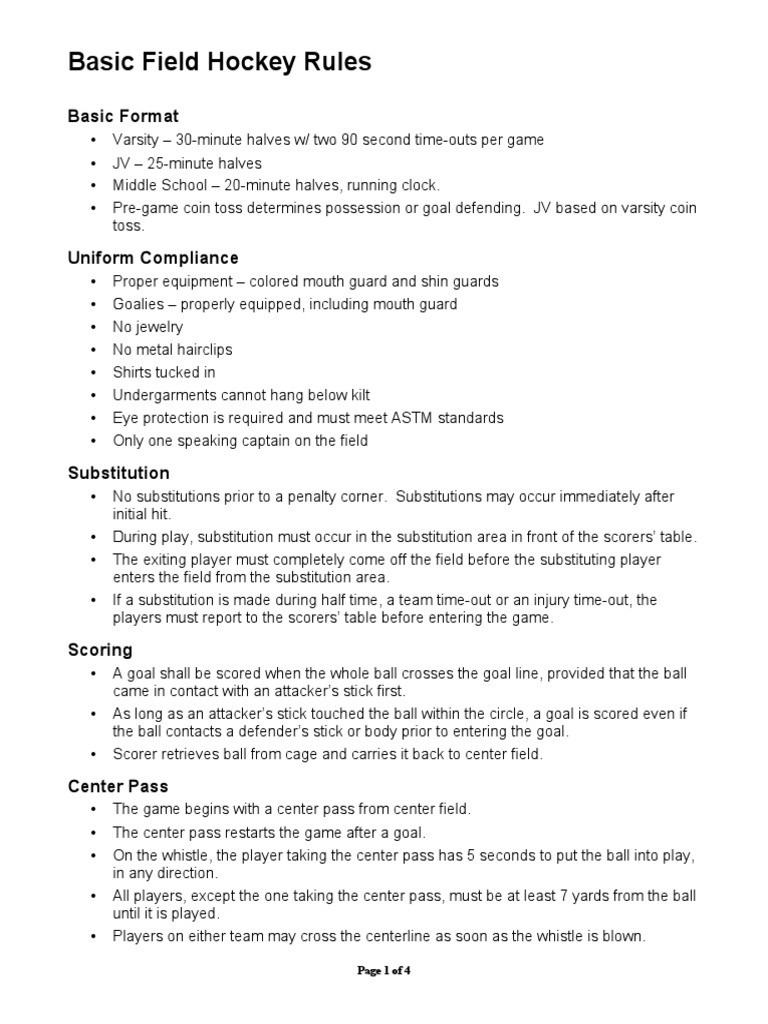 Basic Field Hockey Rules Pdf Pdf Competitive Games Sports Rules And Regulations
